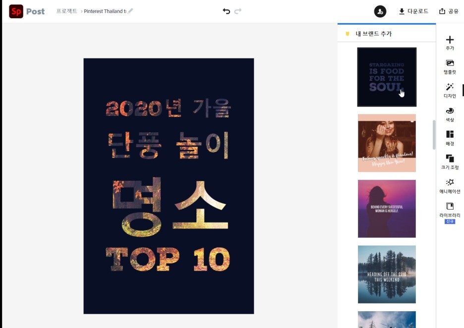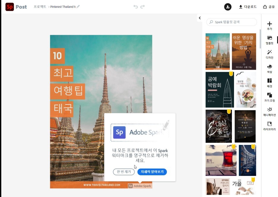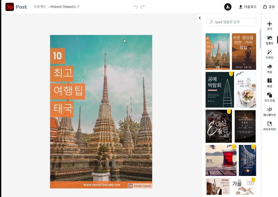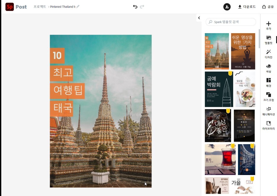 어도비 스파크에서는 다양한 템플릿, 사진, 아이콘을 제공하여 무료로 모든 사람들이 원하는 이미지를 제작할 수 있게 해놨습니다.