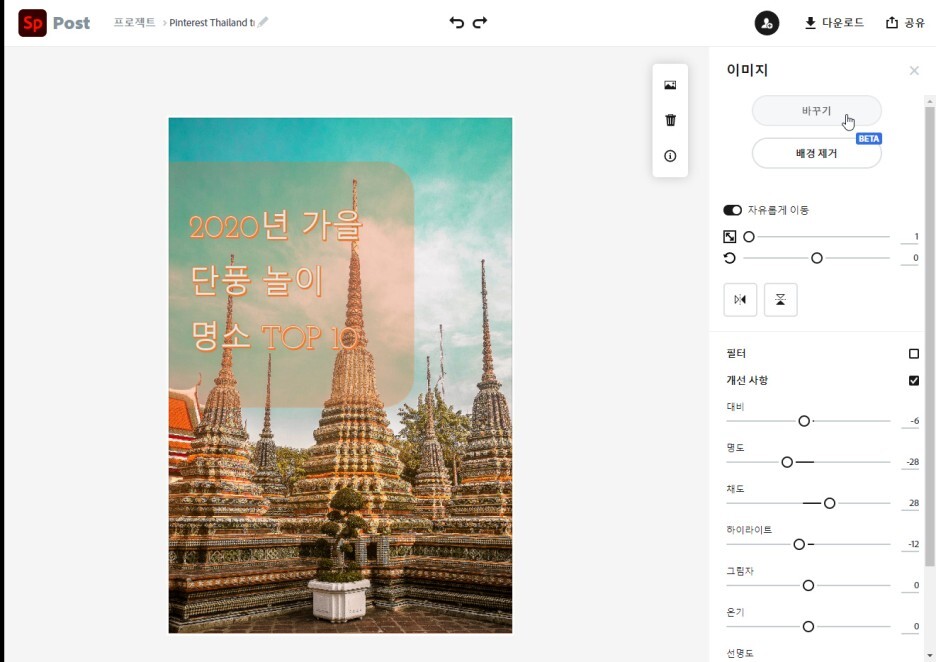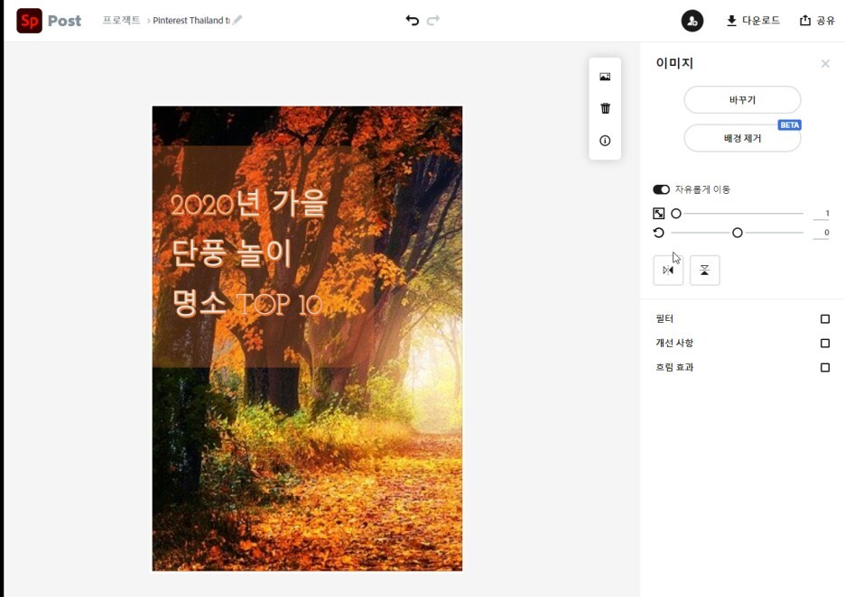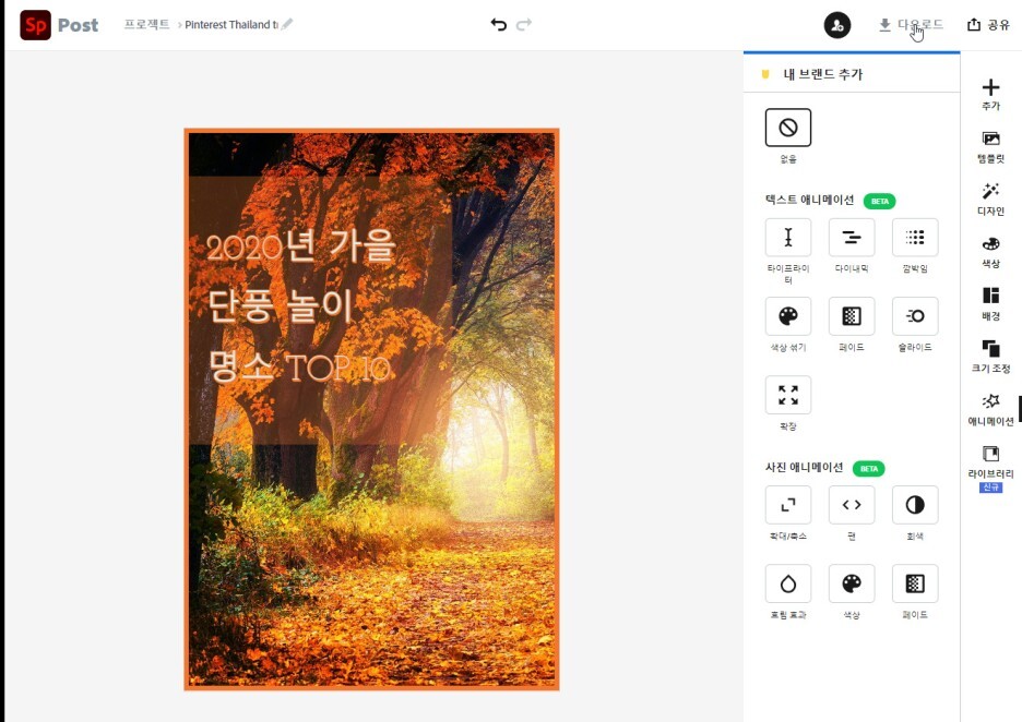 10. 원하는 이미지가 나왔다면 위에 있는 다운로드를 하시면 다운로드하실 수 있습니다.