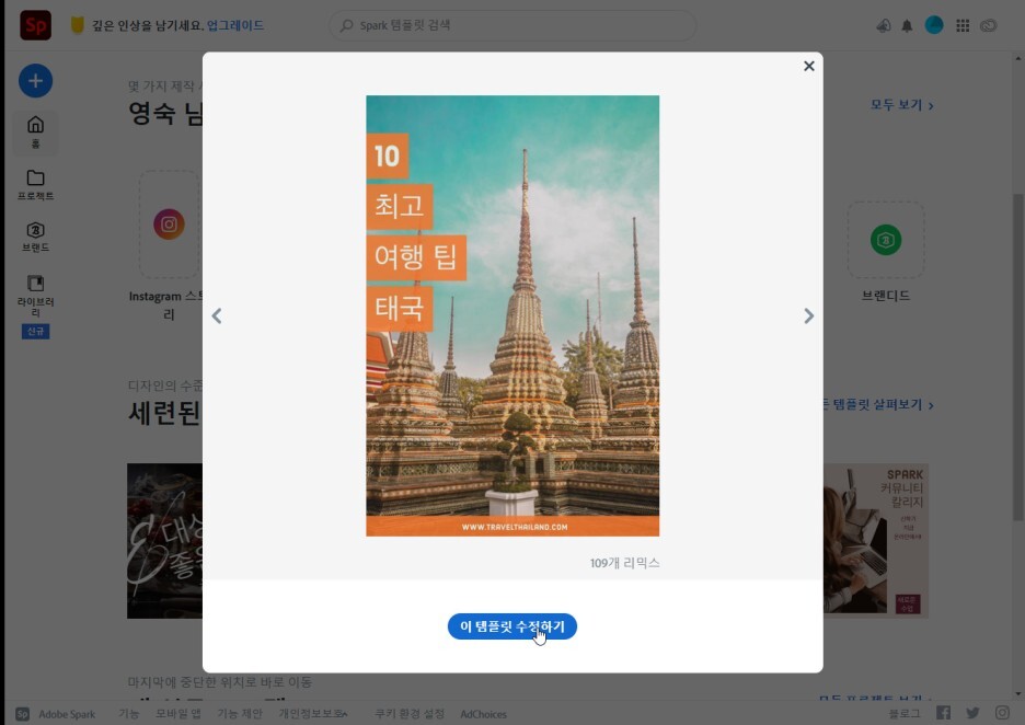 2. 템플릿을 고르고 이 템플릿 수정하기에 들어갑니다. 그러면 수정이 시작됩니다.