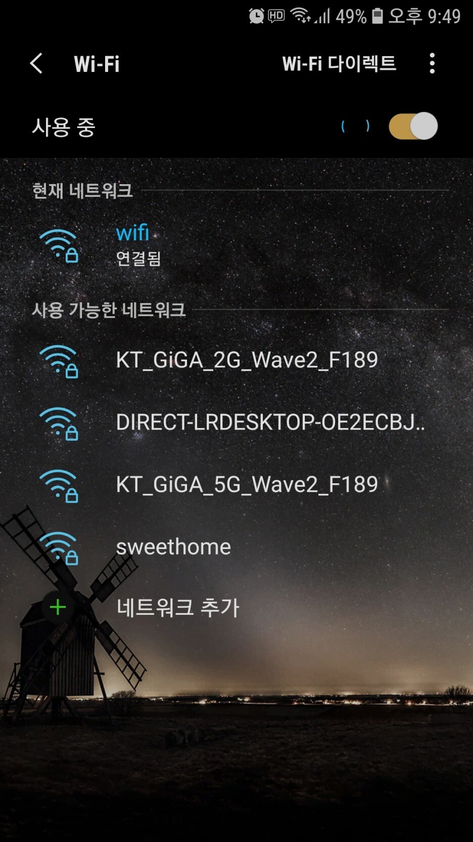 핸드폰에서 해당 와이파이를 찾아서 비밀번호를 입력해 주시면 연결이 됩니다.
