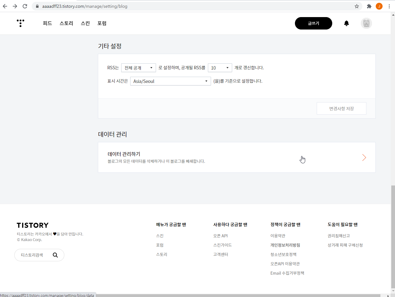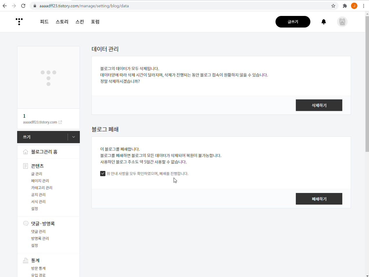 티스토리 블로그 폐쇄 방법