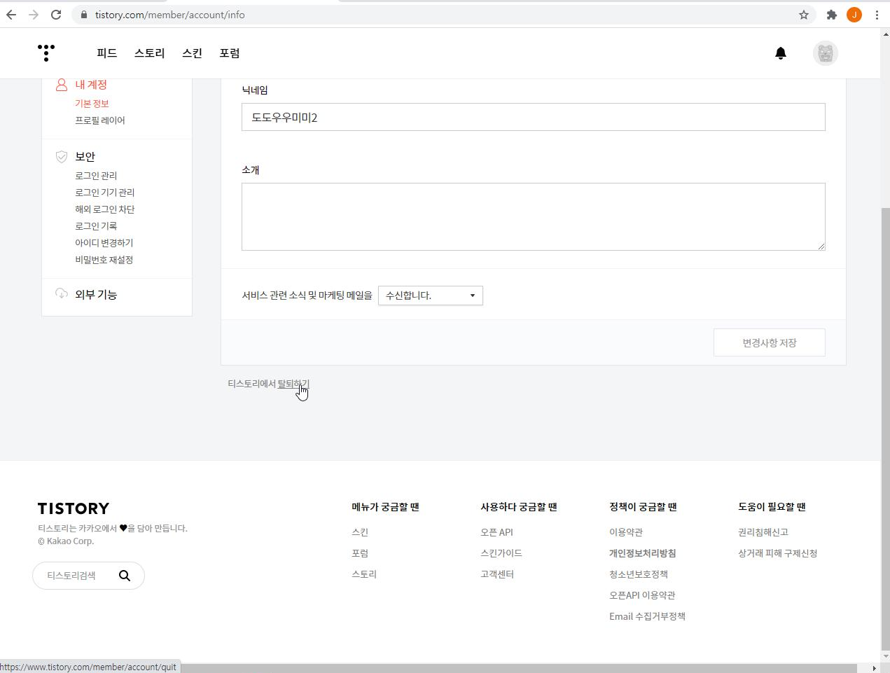 티스토리 탈퇴 방법