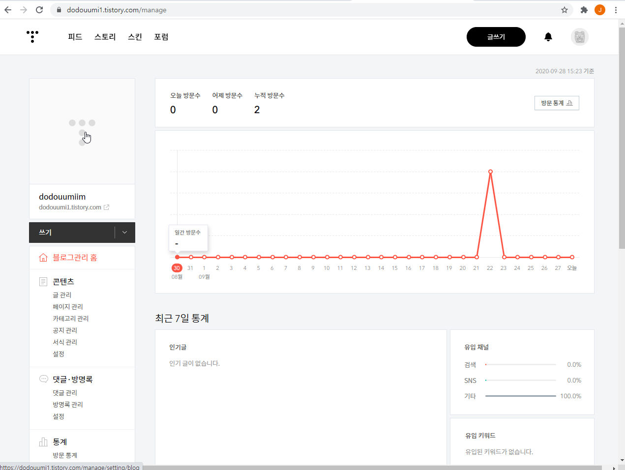 역시 본인 티스토리에서 Q를 누르시면 관리로 들어가게 됩니다.