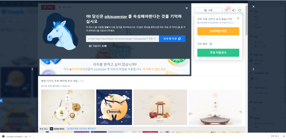 하지만 아래와 같이 항상 출처를 남겨야 하는 번거로움이 있고 파일이 압축 zip 파일로 받아져서 압축을 풀어서 사용해야 합니다.