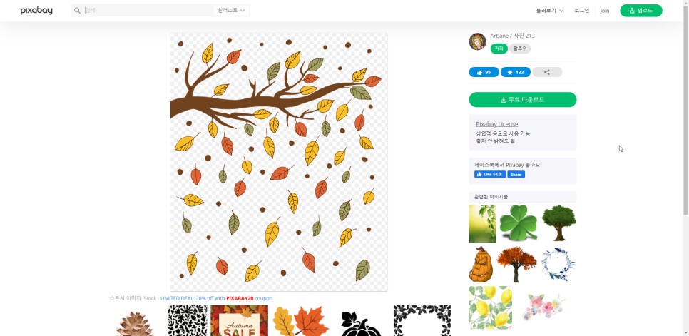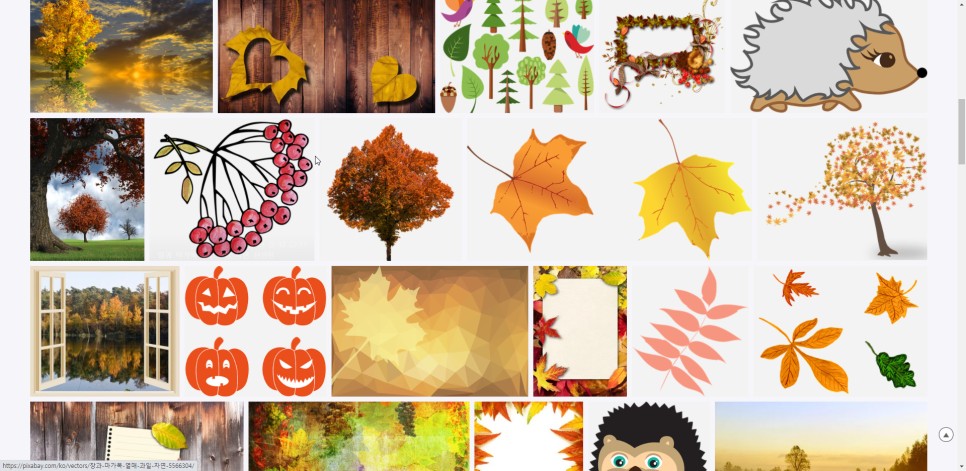그렇다고 해서 무료 일러스트가 저품질이거나 하지는 않습니다. 시기마다 센스 있는 일러스트가 새롭게 올라옵니다 디자인도 누구나 공감하거나 좋아할 만한 일러스트가 많이 있습니다. 추석이라는 검색만 해도 굉장히 많은 일러스트가 나옵니다. 아래는 autumn으로 검색했더니 관련된 일러스트가 쫘~~악 나오더군요