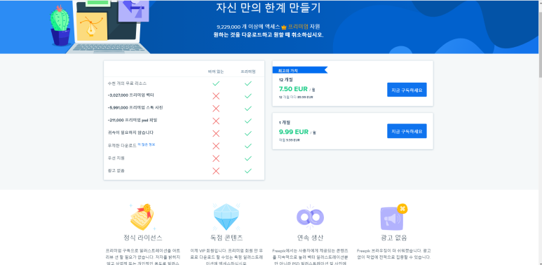 유료 가입을 하게 되면 출처를 적지 않아도 되고 psd 파일과 더 많은 이미지를 제공합니다만 한 달에 10유로를 내야합니다.