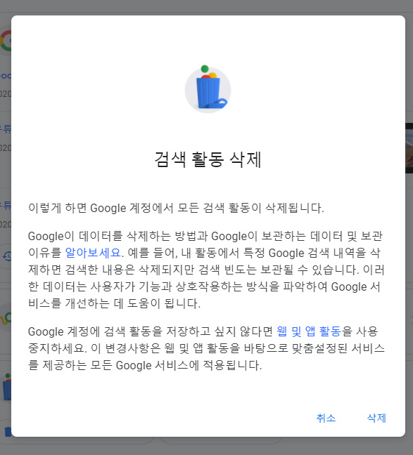 6. 날짜별로 활동 삭제 > 전체 기간을 해주시면 전부 삭제가 됩니다.