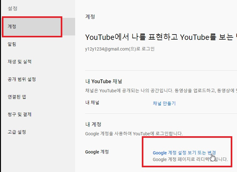 1. 11시 방향 메뉴를 클릭하시고 설정 > 계정 > Google 계정 설정 보기 또는 변경으로 들어가시면 됩니다.
