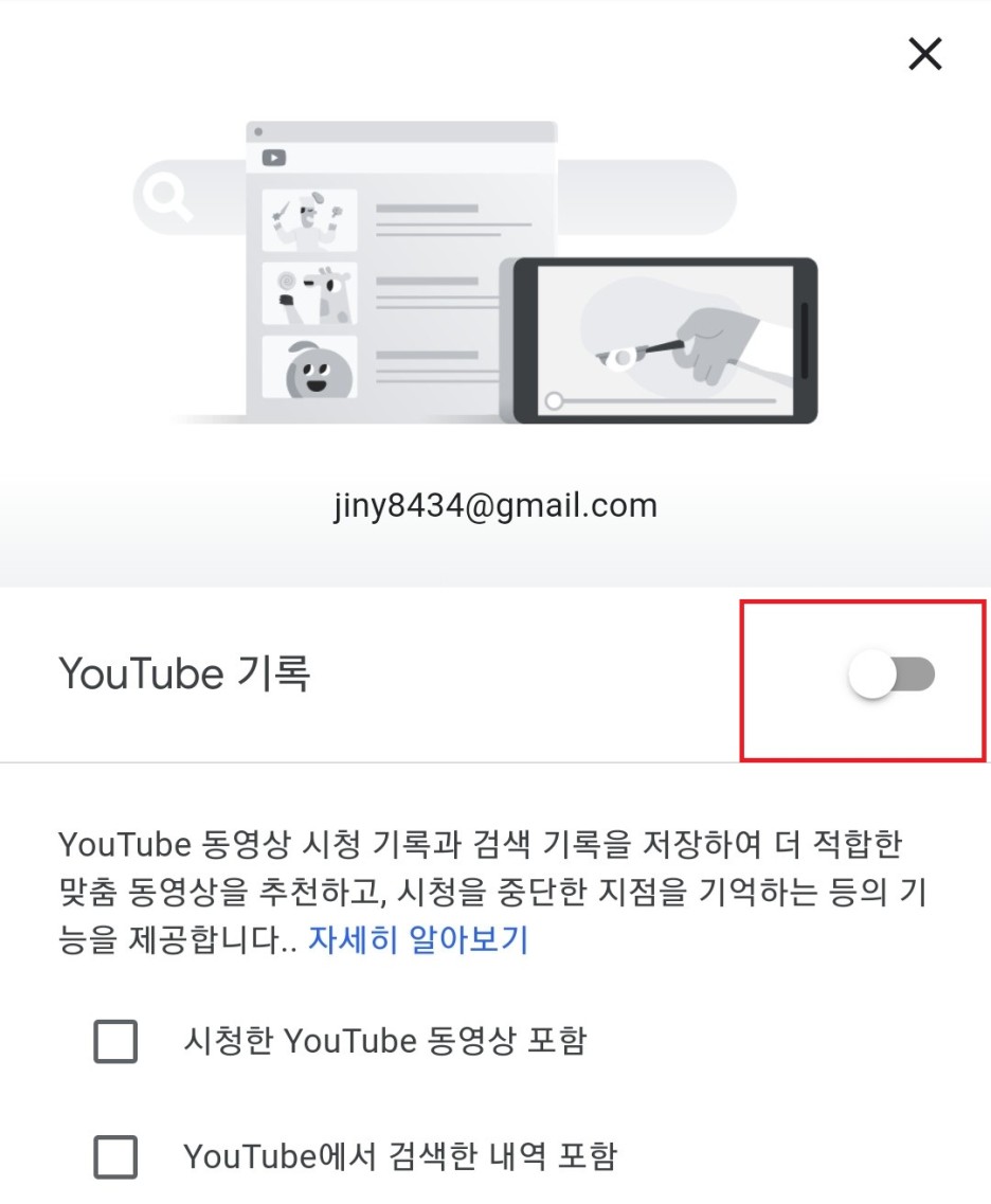 3. 활동 제어에서 Youtube 기록 사용을 클릭하신 다음 Youtube 기록을 체크해제하시면 더 이상 검색어가 저장되지 않게 됩니다.
