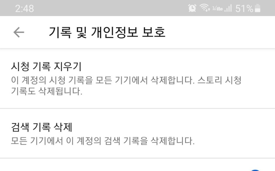 3. 시청 기록 지우기, 검색 기록 삭제 둘 다 삭제하시면 되겠습니다.
