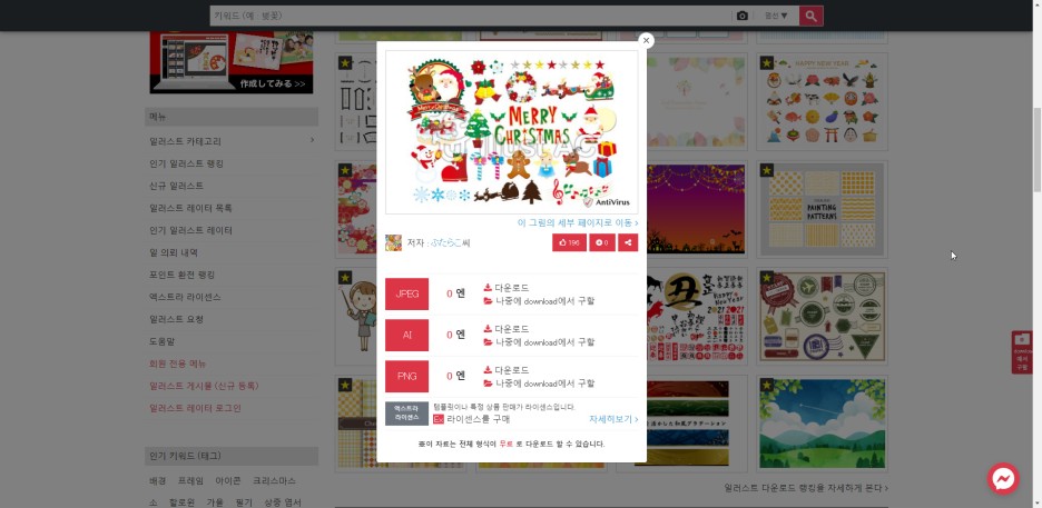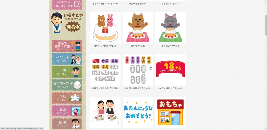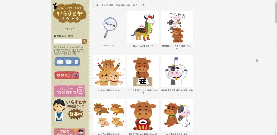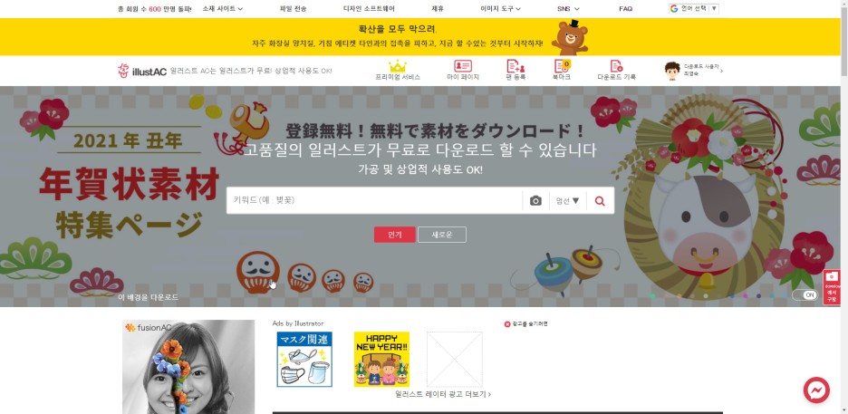 사이트에서 검색도 가능하며 인기 일러스트 신규 일러스트 등 정리가 잘 되어있습니다.