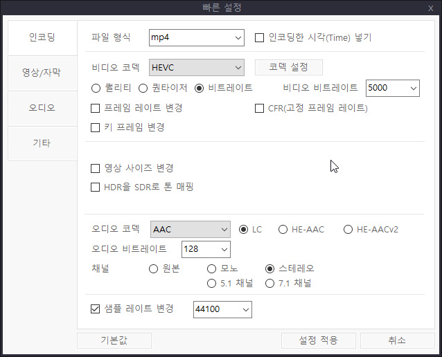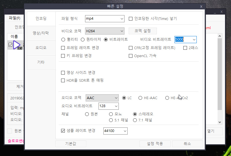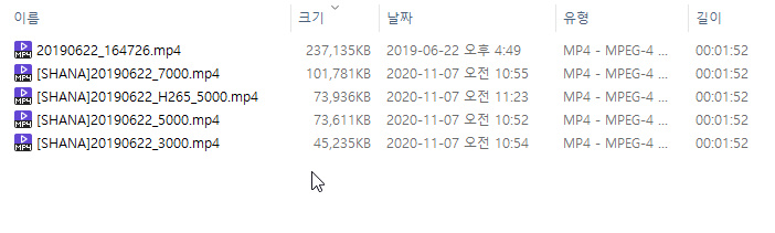그리고 H265(HEVC) 비트레이트 5000으로 인코딩도 하였습니다.
